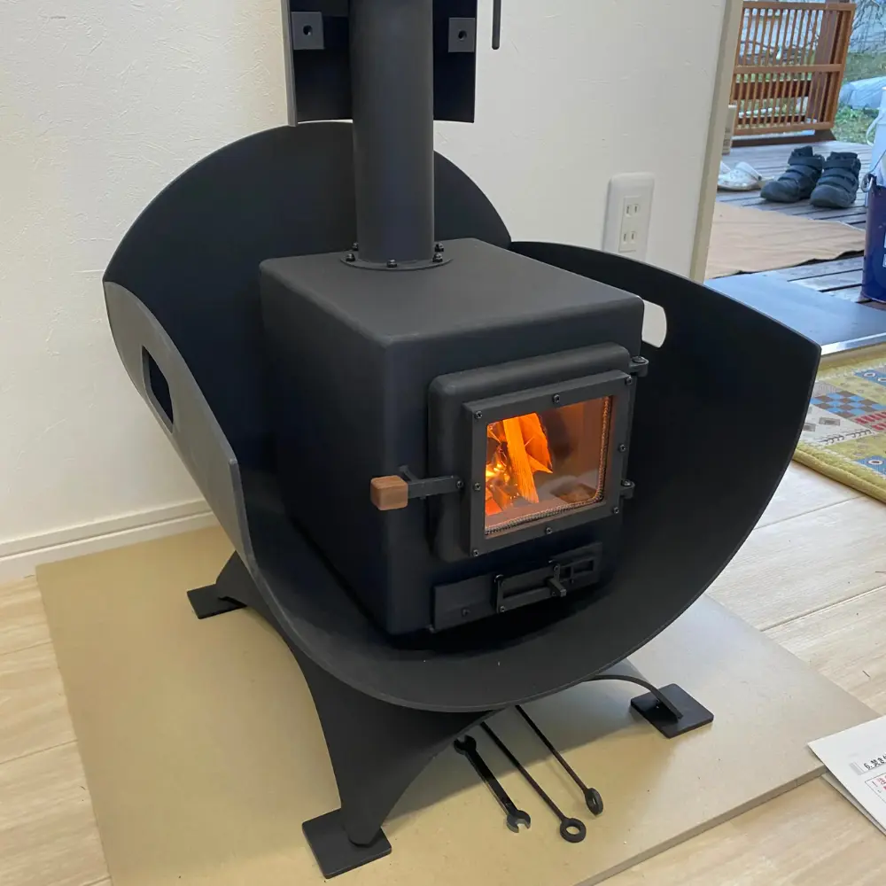トレーラーハウスに薪ストーブを置くとなると、一般的なサイズでは熱すぎてしかも幅を取ってしまいます。