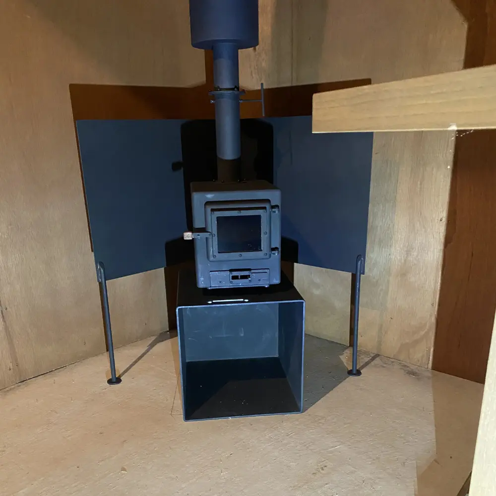 20フィートのコンテナサウナの両脇に薪ストーブを1台ずつ設置しております。